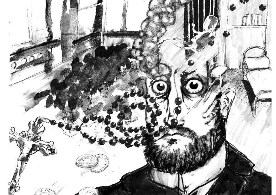 Der Killing Priest aus Mainz Illustration des Romans „Der Killing Priest aus Mainz“ von Gunnar Schwarting. Erschienen im JüLi-Verlag/Mainz , ISBN 978-3-945584-01-9