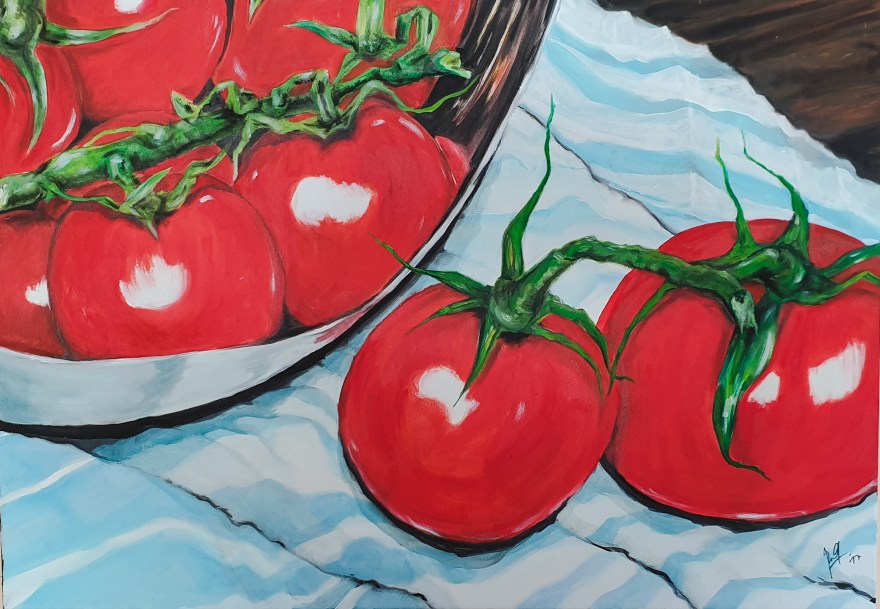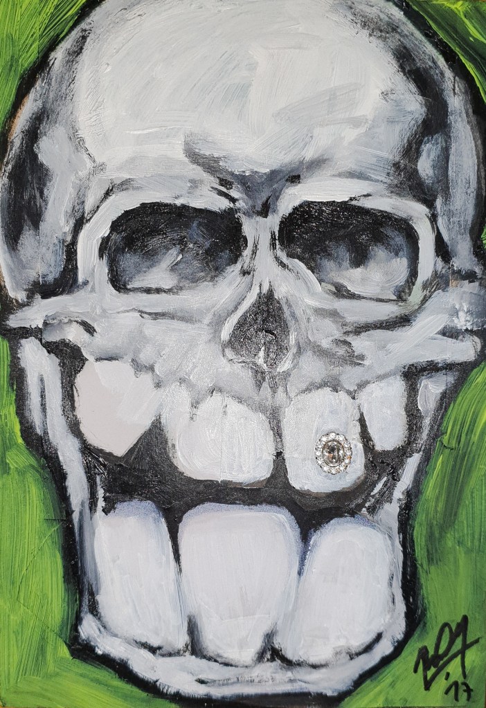 „Osorbisterrarum“, Collage, Röntgenbilder, Zeitungen, Acryl, Edding, Karton aufgezogen auf Holz, 95,5x103cm„Tomatenleben“, Öl auf Leinwand, 100 x 70cm„Elizabeth Taylor“, Acryl, Strass auf Holz, 21 x 30cm